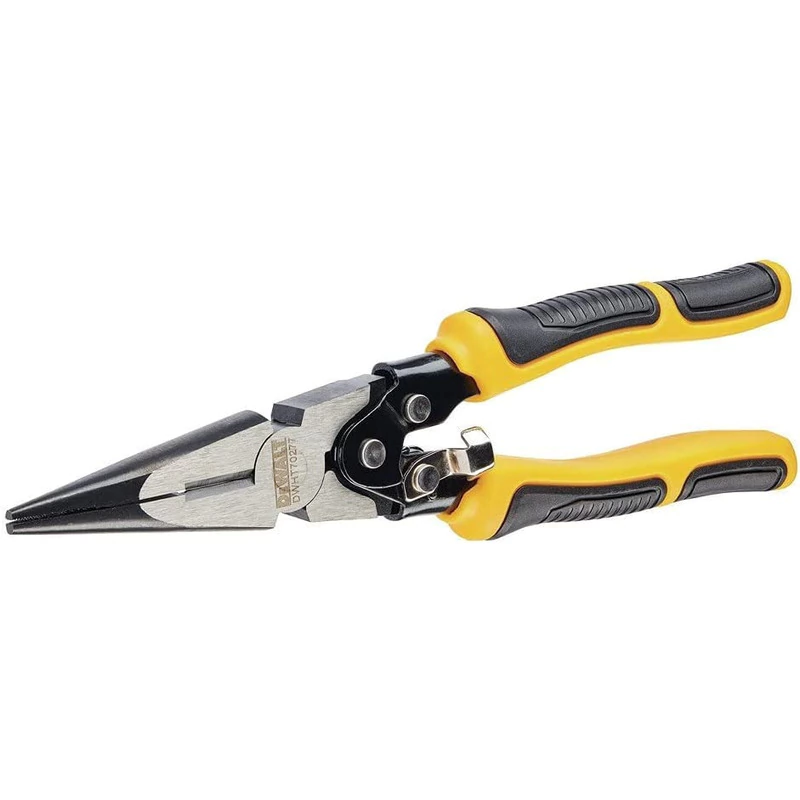Los alicates de punta larga de acción compuesta incluyen hojas de corte endurecidas por inducción que brindan a estos alicates un 70 % más de potencia de corte que los alicates de corte estándar. El mango bimaterial permite un agarre fuerte y proporciona mayor comodidad.