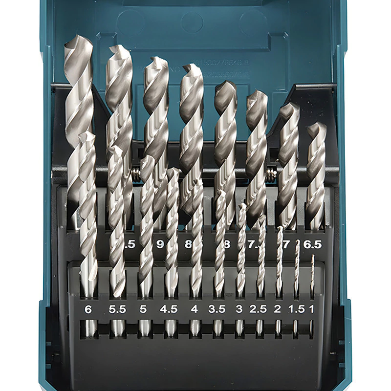 Juego de brocas para metal HSS-G de Makita, 19 unidades, 1.0 a 10,0 mm, paquete D-67549