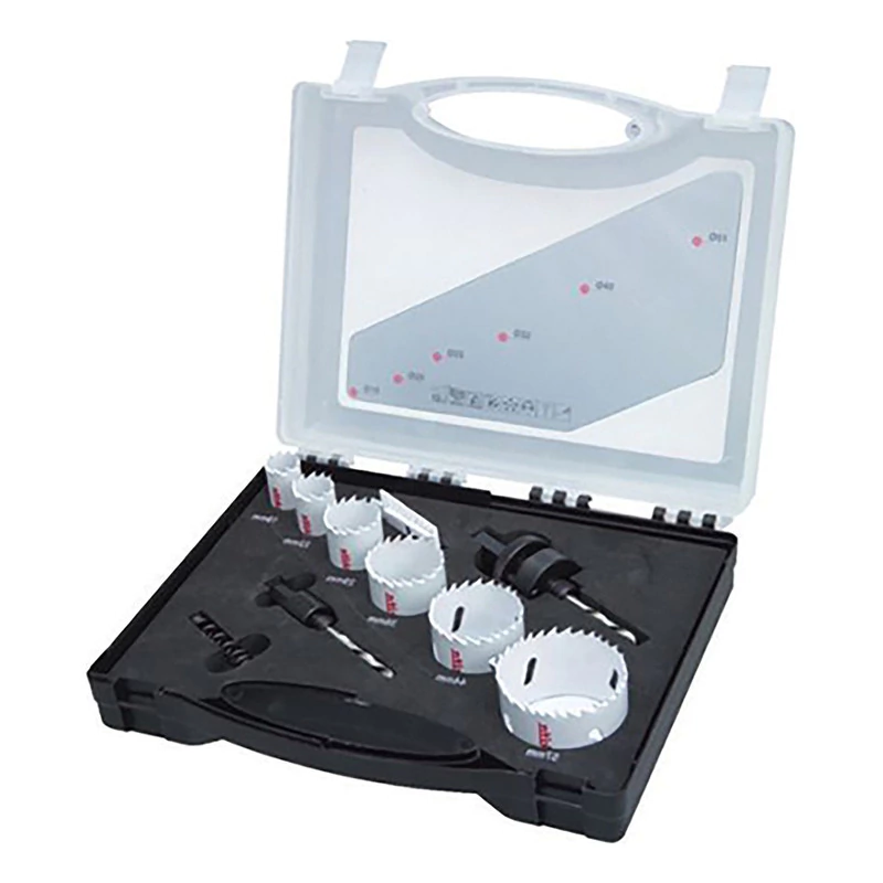 La gama broca de corona bi-metal tiene un diseño de diente variado y se recomienda para cortar acero, aluminio, cobre, latón, madera y plástico.